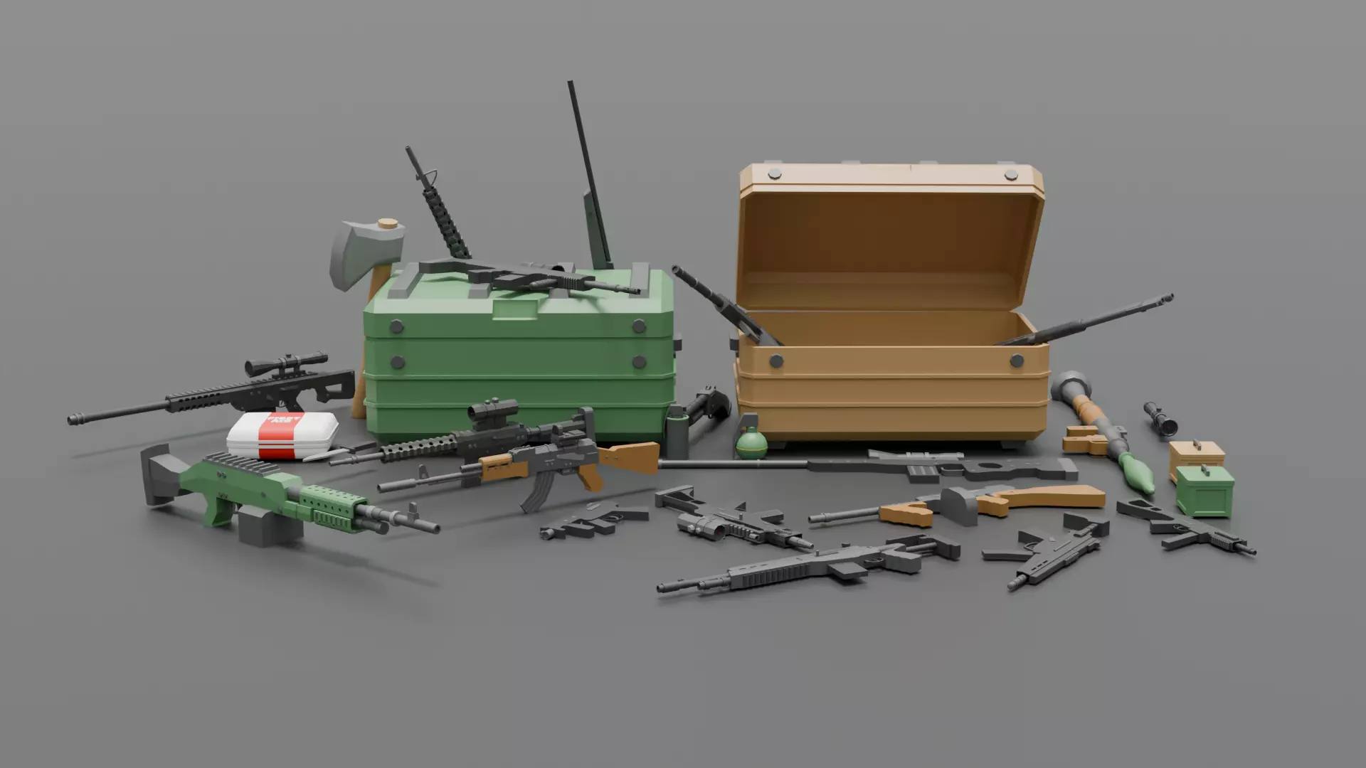 1-Weapons,Their Attachment And Large Ammo Box(109 Prefabs)